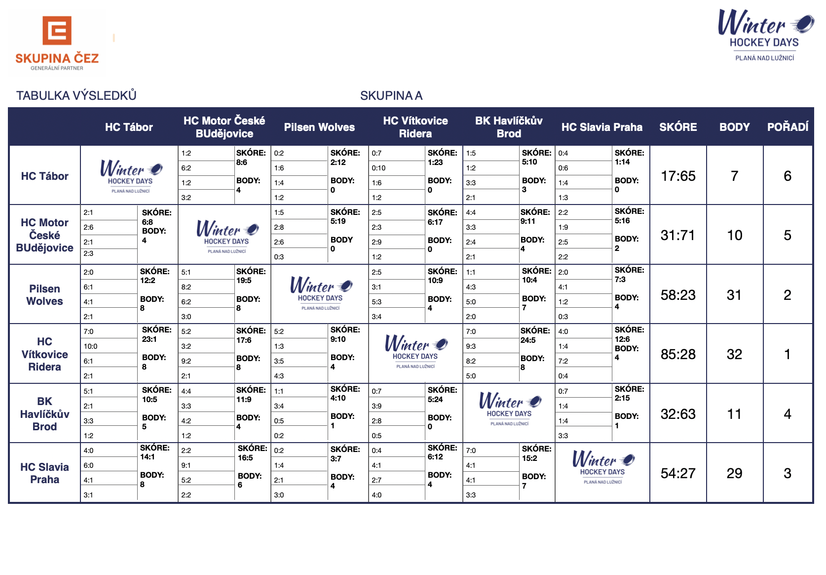 Výsledky skupina A